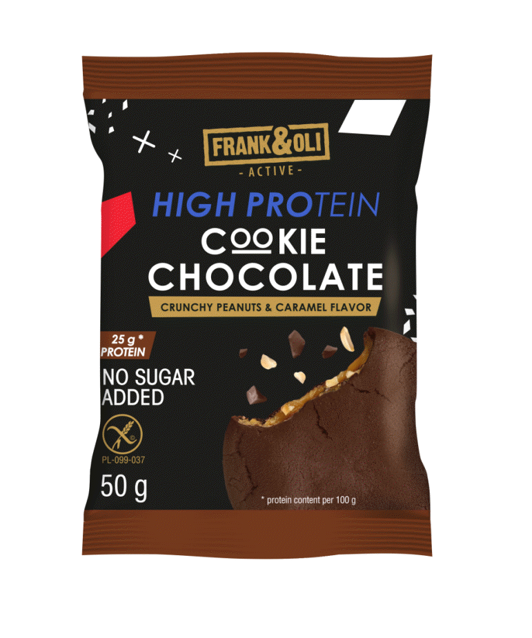 Vollgepackt mit Protein und Ballaststoffen ist der High Protein Cookie Chocolate Crunchy Peanuts & Caramel mehr als nur ein Snack – er ist eine intelligente Ergänzung der Ernährung für aktive Menschen, Fitness-Enthusiasten und alle mit einem geschäftigen Lebensstil. Hergestellt mit WPC 80 Molkenprotein, Zichorienwurzel-Ballaststoffen, knackigen Erdnüssen und zuckerfreier dunkler Schokolade, unterstützt dieser Cookie die Regeneration, stillt den Hunger und verwöhnt den Gaumen.